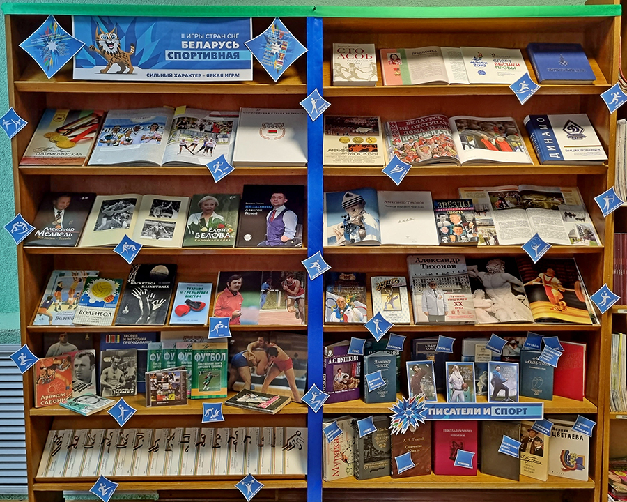 Ко II играм стран СНГ отдел обслуживания и информации центральной библиотеки им. М Горецкого предлагает вниманию своих читателей книжно-иллюстративную выставку «Беларусь спортивная», а филиал «Ленинскаясельская объединенная библиотека» тематическую выставку «Быстрее, выше, сильнее!». Посетители библиотек могут ознакомиться с инфографикой, статьями по данной тематике, а также с книгами о спортивных дисциплинах, в которых спортсмены Игр будут соревноваться. На выставках представлены издания, которые позволят читателям познакомиться с историей физической культуры и спорта, узнать о всевозможных видах спорта, книги о спортивных традициях и достижениях современной Беларуси.
