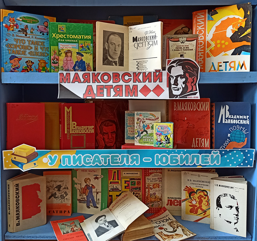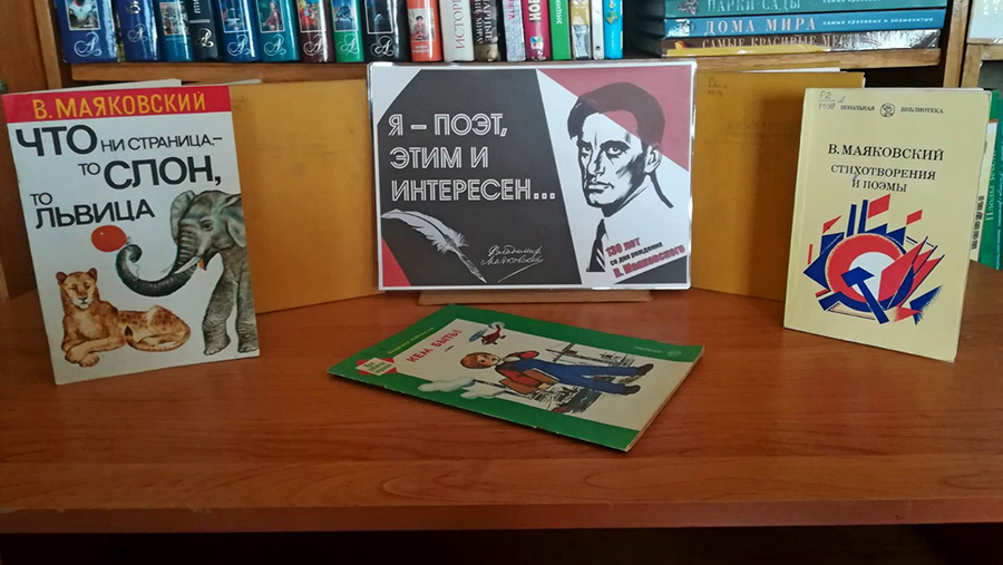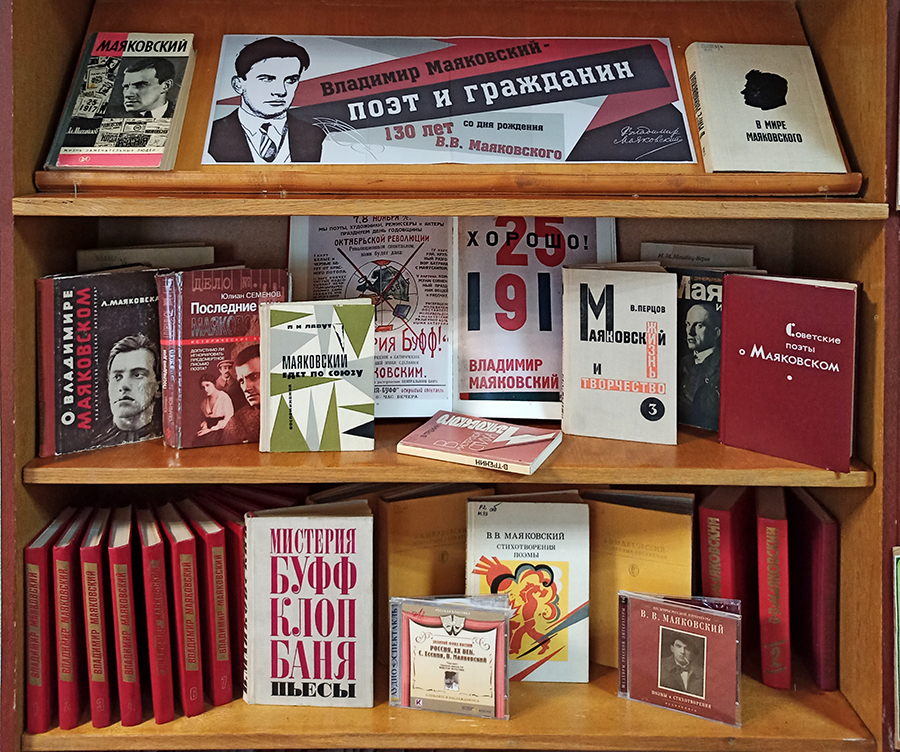 В библиотеках сети к 130-летию со дня рождения В. В. Маяковского оформлены библиотечные выставки и тематические полки: «Владимир Маяковский – поэт и гражданин», «Маяковский детям», «Я – поэт, этим и интересен…», «Поэт с пламенным сердцем», «Я знаю силу слов, я знаю слов набат!».