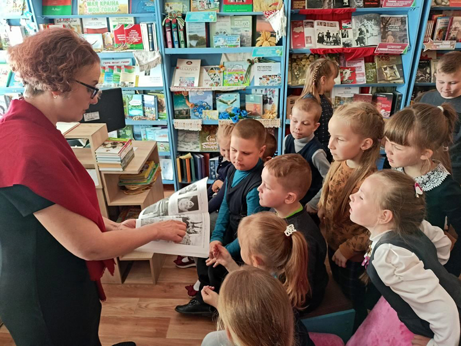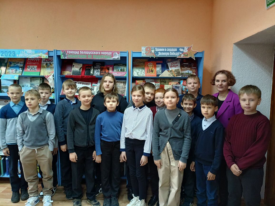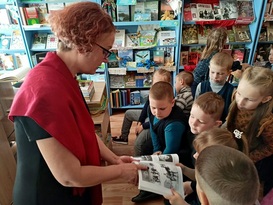 и Горецком районе юные читатели узнали о порядках гестаповцев, о фашистском режиме об издевательствах над мирными жителями. На фоне песен военных лет дети читали стихи, почтили память погибших минутой молчания. Юным читателям было предложено посмотреть фильм «Вставай, страна огромная…» и порассуждать о необходимости беречь мир, не допускать возможности вторжения врага на наши родные земли.
