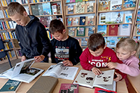 Вниманию учащихся была представлена выставка «Храним в сердцах Великую Победу». Библиотекари рекомендовали детям представленные книги, рассказывали краткое содержание и зачитывали самые интересные эпизоды. Дети заинтересовались книгами и с интересом рассматривали фотографии, сделанные нашим земляком Алексеем Михайловичем Богомоловым в мае 45 года в Берлине и другие фотоальбомы военных лет. Затем ребята самостоятельно познакомились с краеведческими материалами и книгами военной тематики.