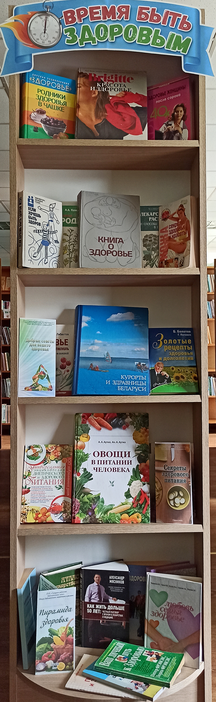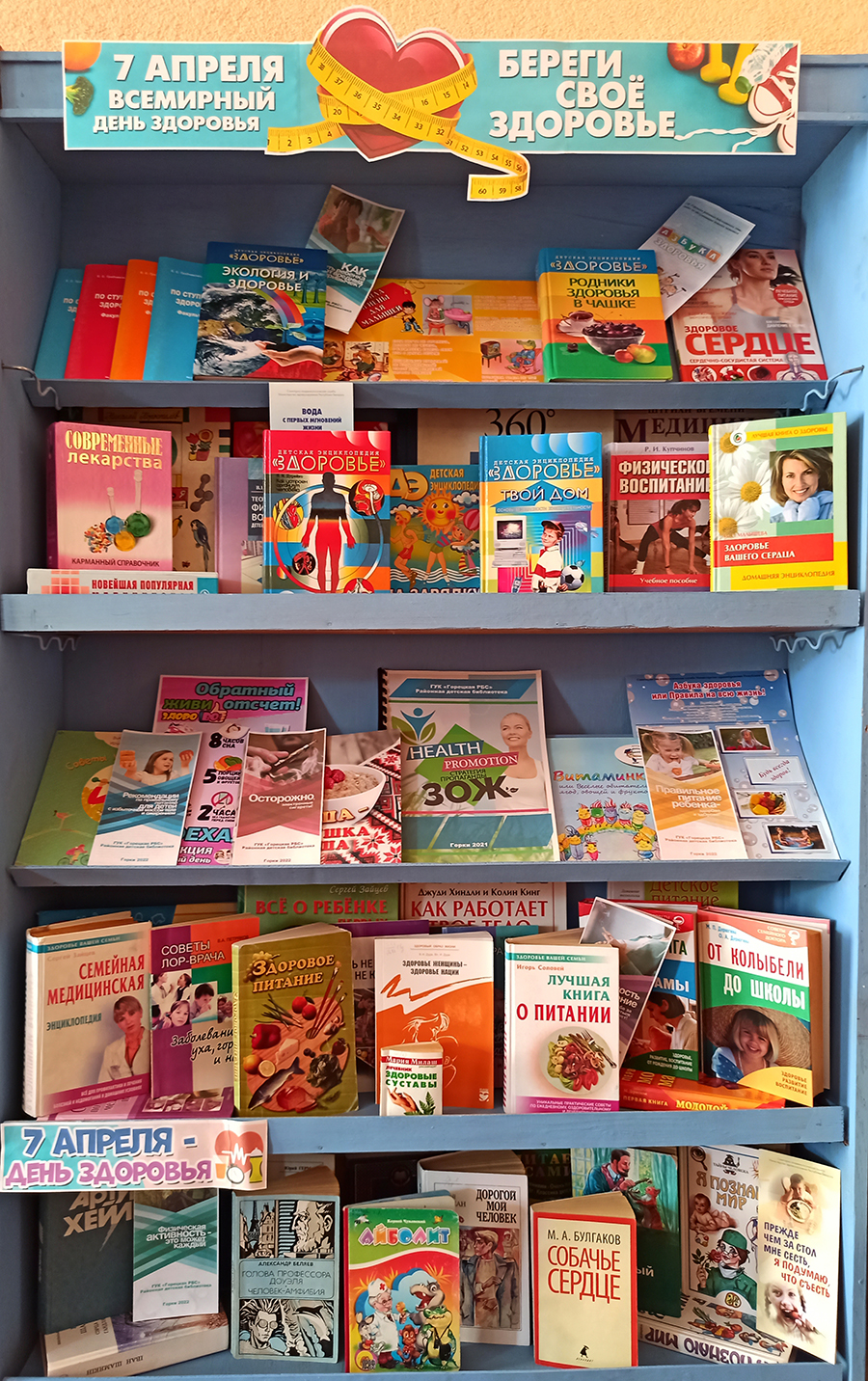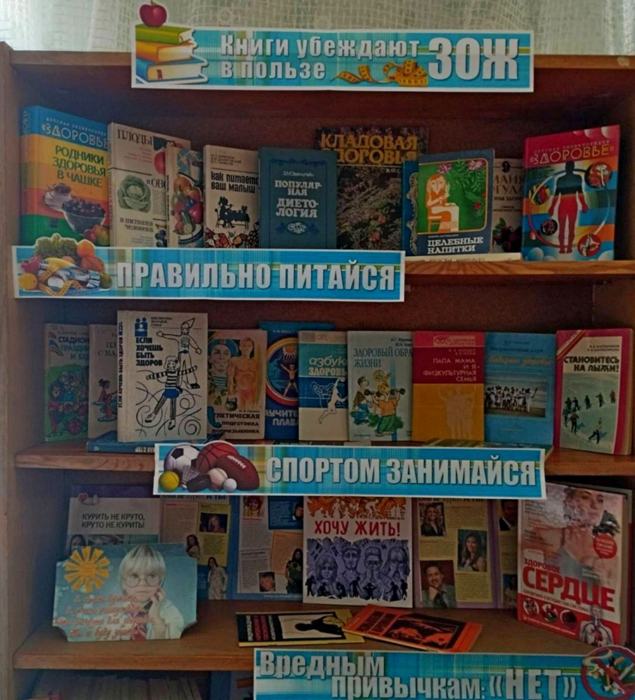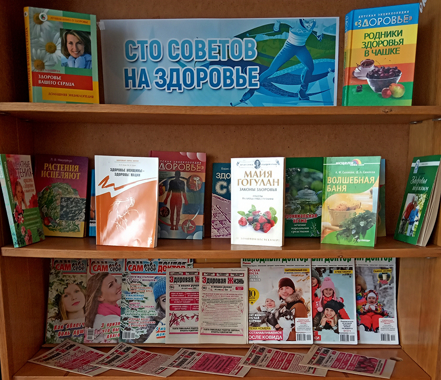Также в рамках месячника в библиотеках сети были оформлены выставки: «Береги своё здоровье», «Время быть здоровым», «Путешествие в страну здоровья», «Здорово жить», «Сто советов на здоровье», «В здоровом теле, здоровый дух», «Книги убеждают в пользе ЗОЖ». Представленные книги полны полезных советов: от правильного питания до физических упражнений разных уровней сложности, а энциклопедии в доступной форме смогли рассказать читателям, как устроен организм и что нужно делать, чтобы не болеть.