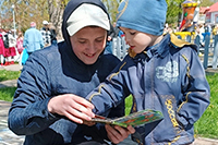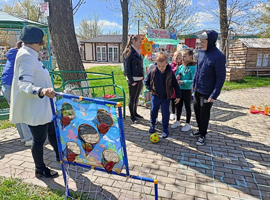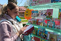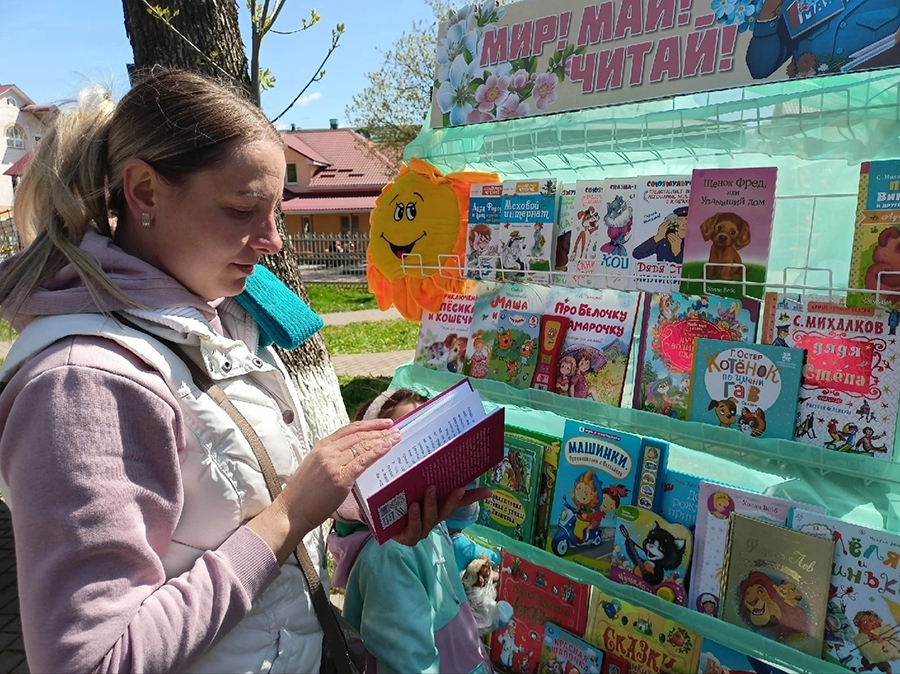 Сотрудники отдела по обслуживанию детского читателя центральной библиотеки им. М. Горецкого собрали любителей чтения на библиотечную маёвку, организовав для них работу литературного пункта «Мир! Май! Читай!», игровой площадки «Первомайские забавы». В этот праздничный день звучала зажигательная музыка, было шумно и весело. Рисунки на асфальте, интересные игры, конкурсы и викторины ждали присутствующих на площадке, а юные книголюбы смогли почитать интересные книги.