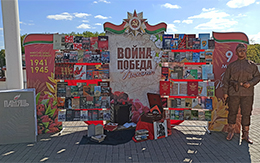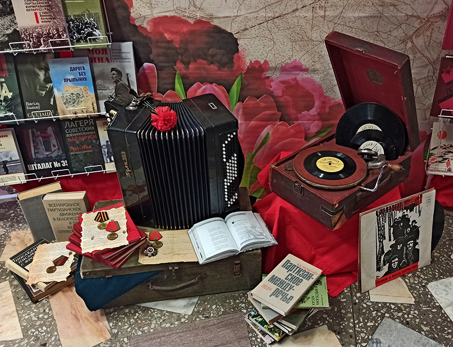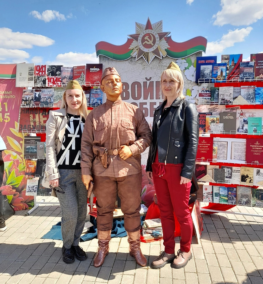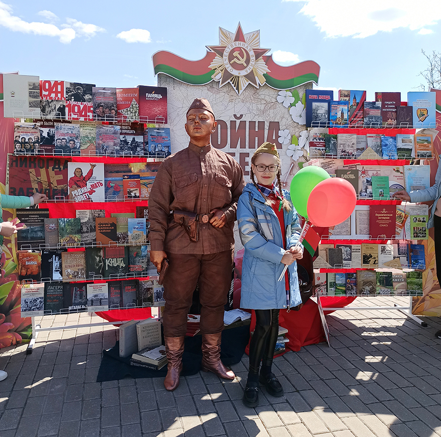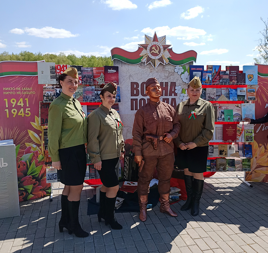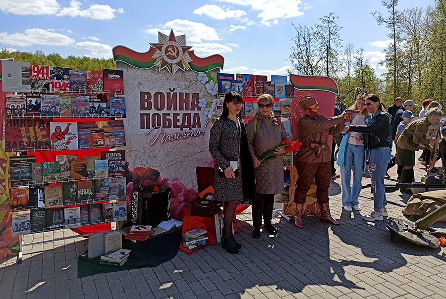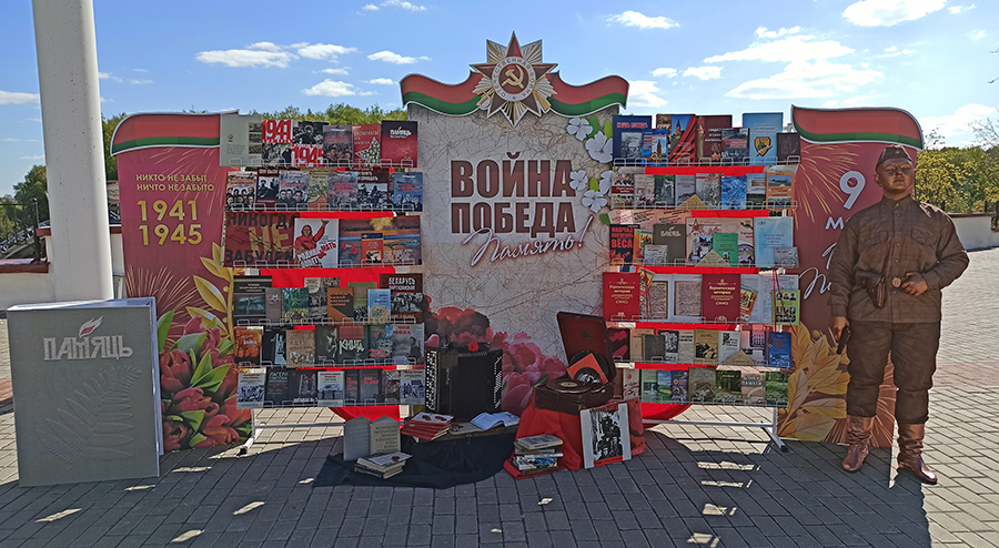 Сотрудники библиотеки, в свою очередь, представили вниманию жителей и гостей города масштабную экспозицию «Война. Победа. Память!». Посетители смогли познакомиться с литературой, отражающей ход военных событий на территории Беларуси на книжно-иллюстративной выставке. Здесь экспонировались самые разнообразные издания, посвященные великой победе советского народа в Великой отечественной войне.