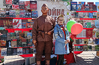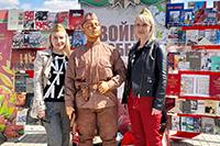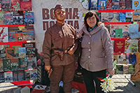 Не оставила равнодушными посетителей и тематическая фотозона, где все желающие могли сфотографироваться с «живой статуей» воина, а некоторые прохожие даже пытались прикоснуться к ней, чтобы, по всей видимости, убедиться, что имеют дело не с холодной бронзой.