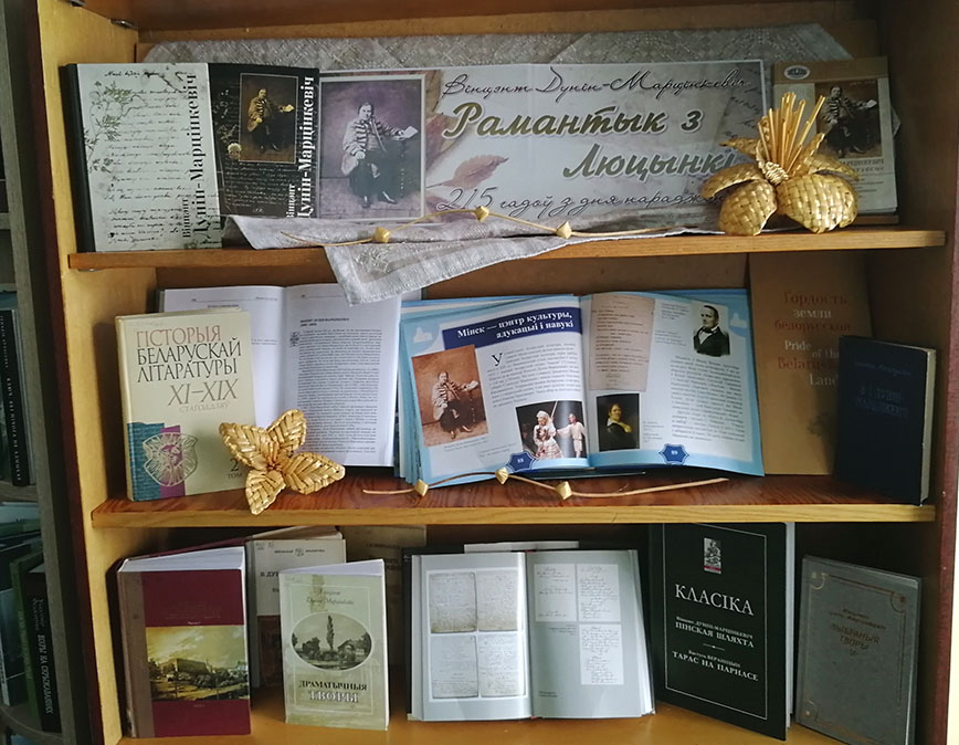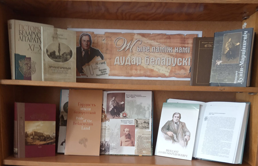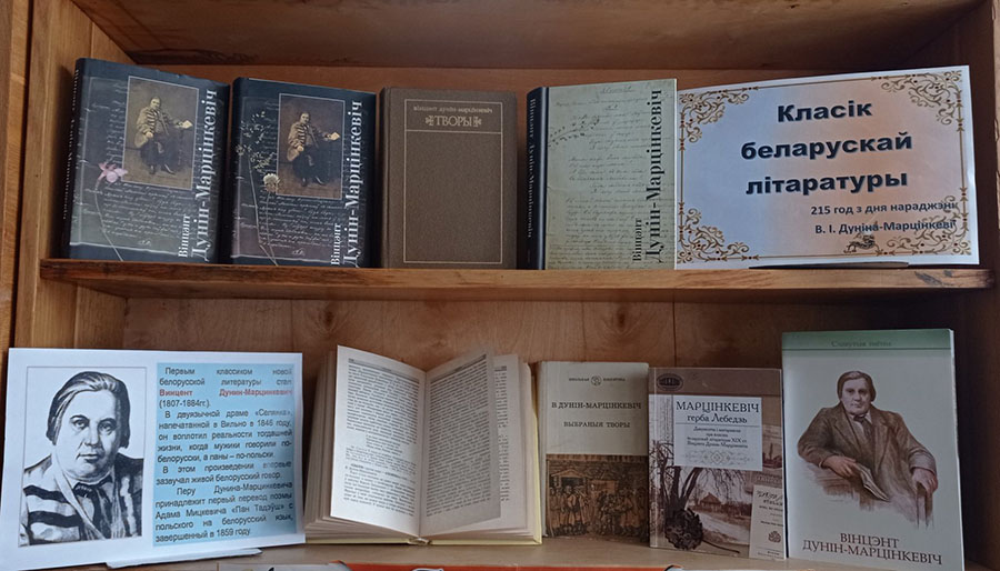 Так, аддзел па абслугоўванню дзіцячага чытача экспануе выставу-партрэт “Больш за ўсё я бацькоўскаму краю адданы”, на абанеменце цэнтральнай бібліятэкі імя М. Гарэцкага дзейнічае выстава “Рамантык з Люцынкі”, аднайменную кніжную паліцу прапаноўвае філіял “Горская сельская аб’яднаная бібліятэка”. Супрацоўнікі філялаў “Каменская і Маслакоўская сельскія аб’яднаныя бібліятэкі” падрыхтавалі выставы “Жыве паміж намі дудар беларускі” і “Вінцэнт Дунін-Марцінкевіч: асоба і творчасць” адпаведна. З жыццёвым і творчым шляхам пісьменніка могуць пазнаёміцца чытачы філіяла “Аўсянкаўская сельская аб’яднаная бібліятэка” праз кніжны агляд “Класік беларускай літаратуры”.