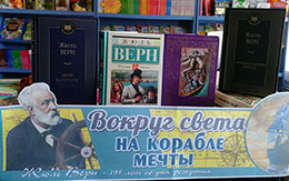 К юбилею Жюля Верна библиотеки сети оформили книжные выставки, на которых представлены сборники романов и повестей, рассказов автора, а также литература о нем самом. Так, на абонементе центральной библиотеки им. М. Горецкого действует выставка «Мир приключений Жюля Верна», а в отделе по обслуживанию детского читателя представлена выставка-путешествие «Вокруг света на корабле мечты», здесь вы найдете самые популярные книги французского писателя: «Дети капитана Гранта», «Вокруг света за 80 дней», «Таинственный остров», «Пятнадцатилетний капитан» и др.