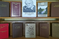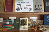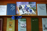 Увазе чытачоў прадстаўлены кнігі пра жыццевы і творчы шлях Янкі Брыля, збор твораў і асобныя творы пісьменніка на беларускай і рускай мовах: «Муштук і папка», «Акраец хлеба», «Птушкі і гнезды», «Я з вогненнай вёскі…», «Витражи», «У родника» і інш.