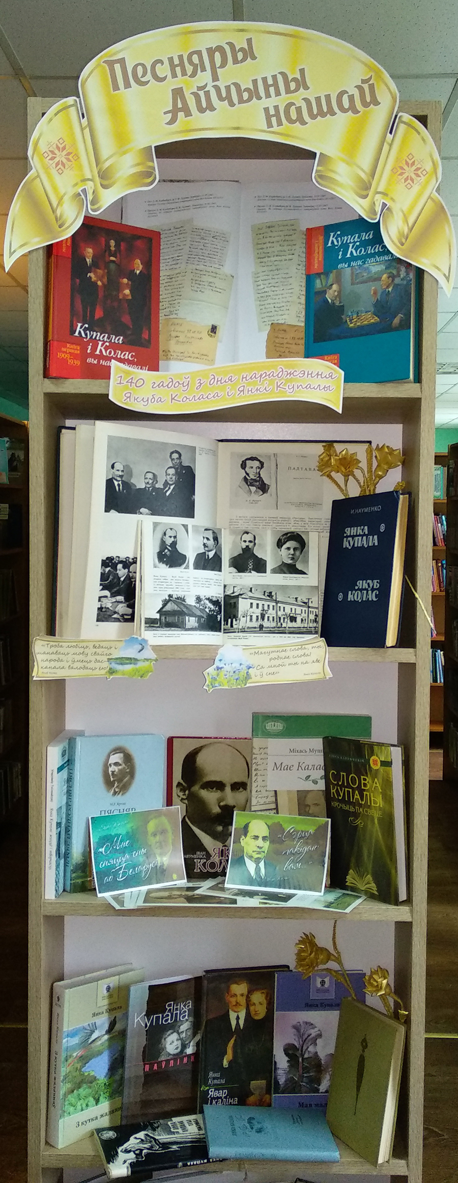 Библиотеки ГУК «Горецкая районная библиотечная сеть» также присоединились к поздравлениям и предложили своим посетителям познакомиться с тематическими выставками: «Дыяменты беларускай літаратуры», «Чараўнік беларускага слова», «Паэт беларускай зямлі», «Сын і пясняр народа», «Купала – паэт. Купала – класік», «Слова Купалы да творчасці кліча», «Нам засталася спадчына», «Песняр роднай зямлі». На выставках представлены интересные сведения из жизни и творчества поэта, а также его знаменитые произведения.