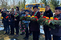Минутой молчания участники митинга почтили память зверски замученных мирных жителей. Затем на могилу возложили венки и цветы.