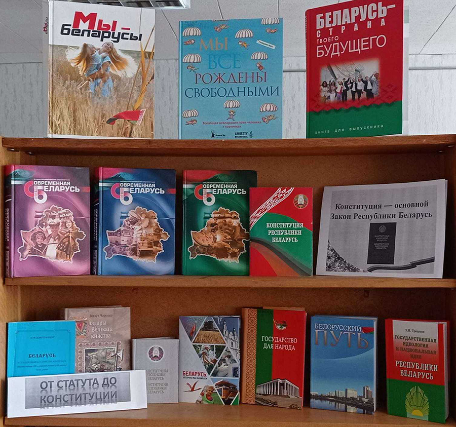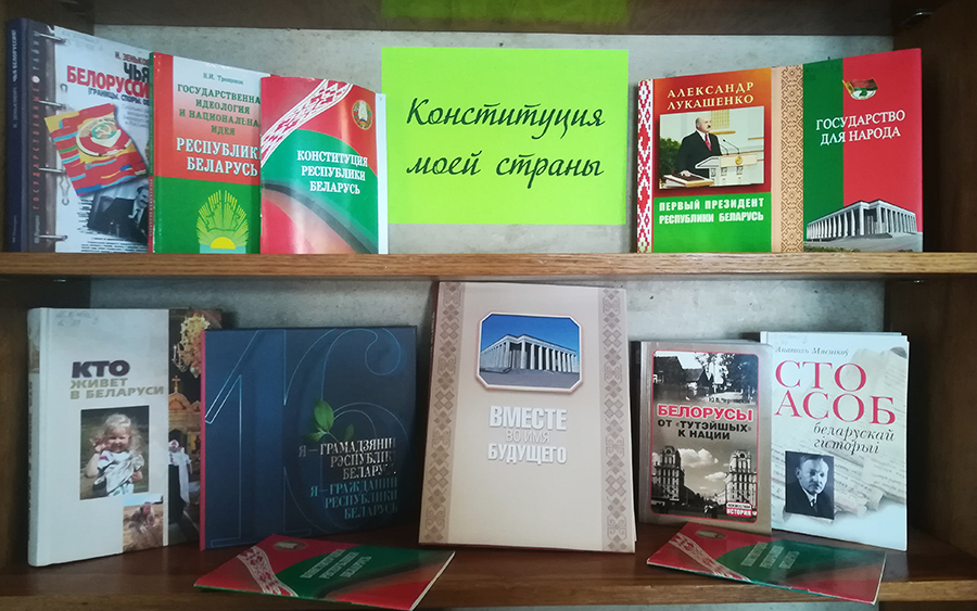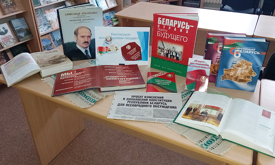 «Конституция Республики Беларусь: права, обязанности, ответственность» (центральная библиотека им. М. Горецкого), «Канстытуцыя маёй краіны» (районная детская библиотека), «Конституция моей страны» (Горская сельская объединенная библиотека), «Конституция – правовая основа государства» (Каменская сельская объединенная библиотека),
