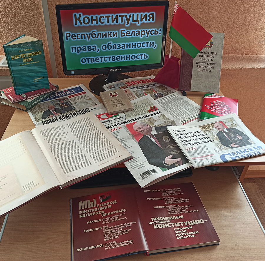 «Конституция: жить в правовом государстве» (Ректянская сельская библиотека), «Закон, по которому живем» (Рудковщинская библиотека-клуб), «Основной закон страны» (Савская сельская объединенная библиотека).