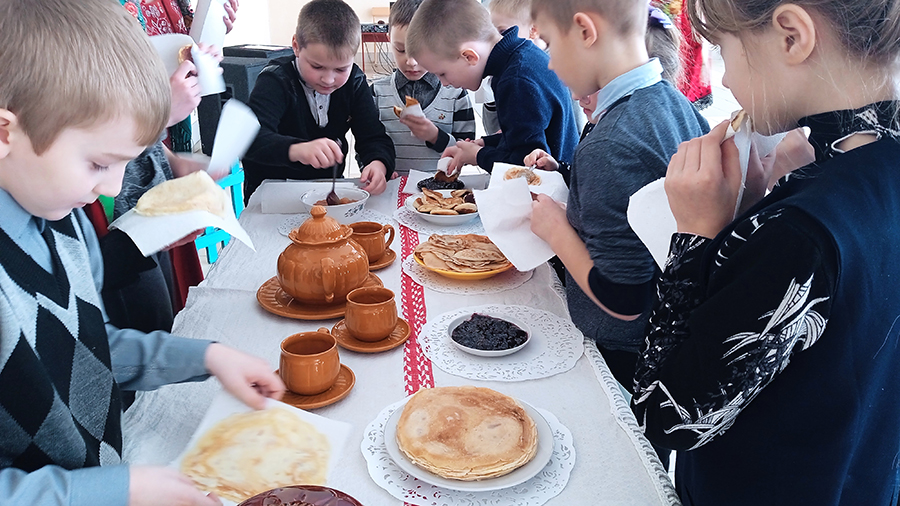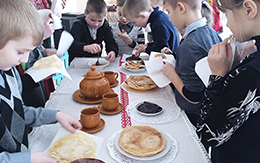 Организаторы праздника постарались создать настроение всеобщего торжества и веселья, доставить детям радость. В завершение праздника все присутствующие угощались горячими, ароматными блинами.