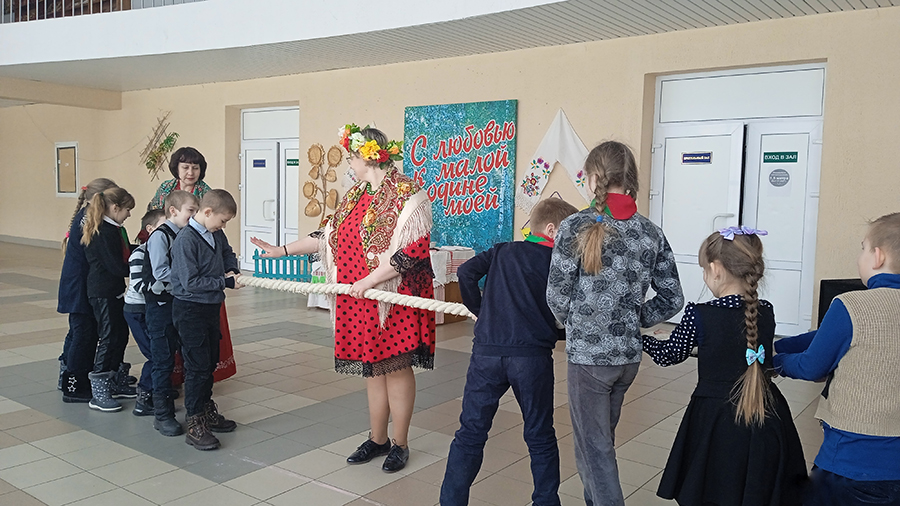 На празднике ребята участвовали в «петушиных боях», конкурсе «кто быстрее съест блин», перетягивали канат, а в игре «попади в цель» состязались в силе и ловкости, отгадывали загадки, водили хороводы.