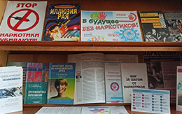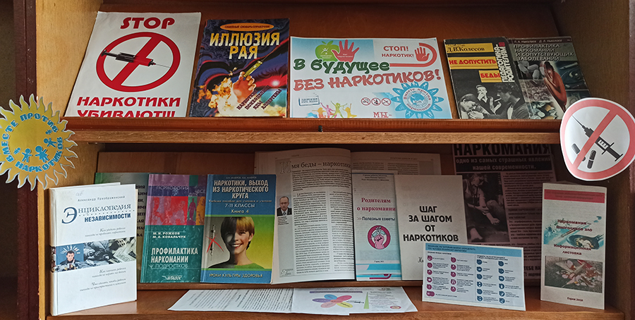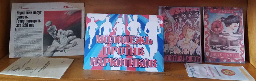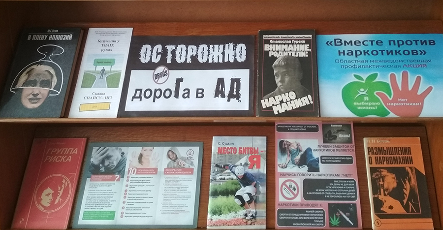 «Наркотик – это не полет, жалкое существование» в Савской сельской объединенной библиотеке. Также были оформлены тематические полки и книжные выставки: «В будущее без наркотиков», «Просто скажи «Нет», «Мир пустоты», «Наркомания – дорога в никуда», «Осторожно! Дорога в АД!», «Алкоголизм, курение, наркомания – как остановить это безумие?», «Умей сказать НЕТ!», «Молодежь против наркотиков».