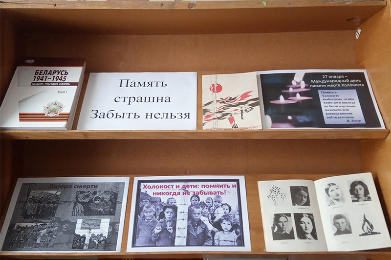 Все материалы, представленные на выставке «Холокост: память и предупреждение», экспонируемой в Рудковщинской библиотеке-клубе, а также на тематических полках «Памяти жертв Холокоста» и «Память страшна. Забыть нельзя», оформленных в Горской и Каменской сельских объединенных библиотеках – это свидетельства уважения к тем, кто выжил, и дань памяти погибшим жертвам. Библиотекари надеются, что выставки поспособствуют развитию у читателей интереса к истории своей страны, развитию толерантного отношения к людям.
