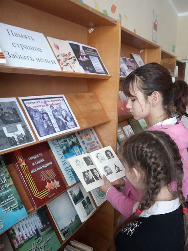 в Красулинской сельской библиотеке экспонируется библиотечная выставка «Никто не забыт и ничто не забыто», тематическая выставка «Историческая память поколений» подготовлена библиотекарями Ленинской сельской объединенной библиотеки. Ознакомиться с библиотечной выставкой «Память священна» смогут читатели Овсянковской сельской объединенной библиотеки,