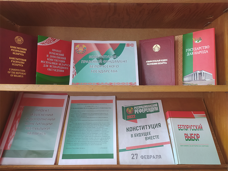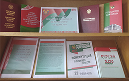 «Конституция – правовой фундамент белорусского государства», библиотечная выставка под таким названием оформлена в публичном центре правовой информации. На выставке представлены материалы, знакомящие читателей с историей становления и развития белорусской государственности, правами и обязанностями граждан Республики Беларусь, также здесь можно получить полную информацию, связанную с предстоящим республиканским референдумом по внесению изменений и дополнений в основной закон страны.