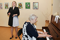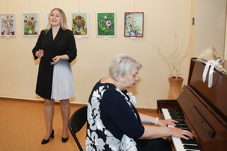 Душевный акростих посвятил Валентине Павловне поэт Александр Веденеев. В исполнении Анастасии Жариковой прозвучали музыкальные поздравления.