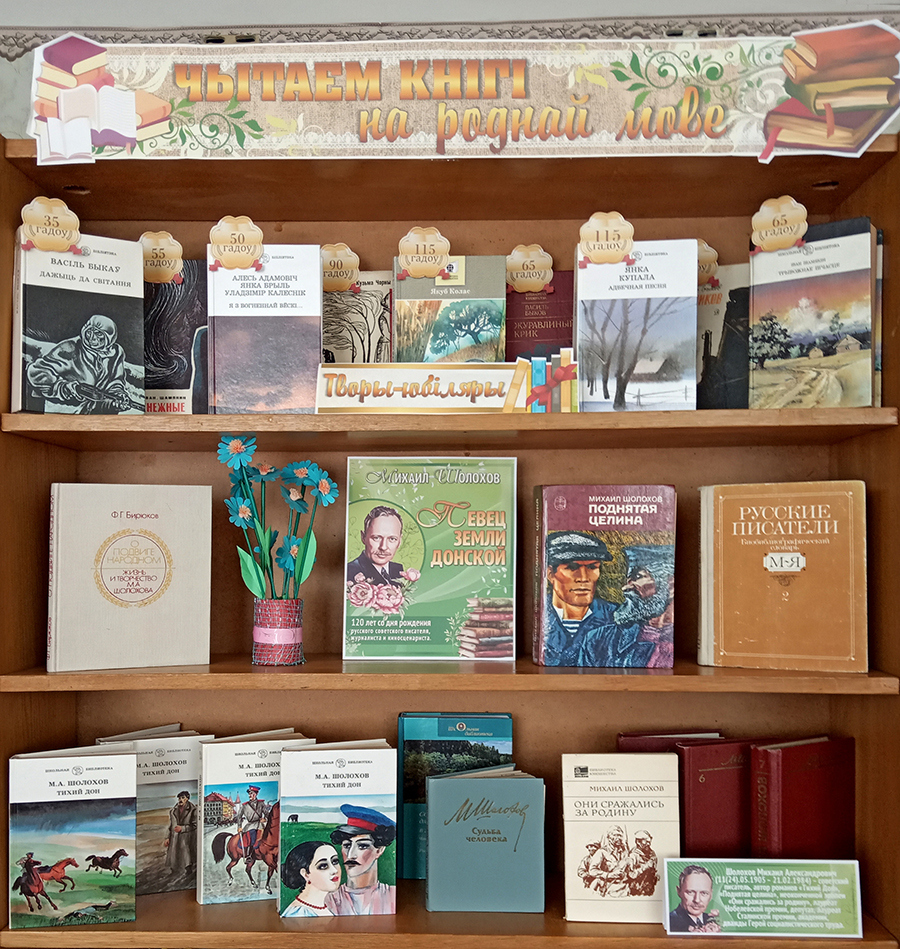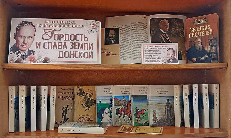 В честь юбилея в библиотеках сети оформлены выставки: «Его строка переживет века», «Певец донской земли», «Листая страницы Шолохова», «Гордость и слава земли донской», на которых представлены воспоминания и статьи о жизни и творчестве писателя. Посетители смогут погрузиться в мир Шолохова, узнать больше о его литературном наследии и общественной деятельности. Открыть для себя интересные факты из жизни и творческого пути прославленного писателя, и, конечно же, впервые познакомиться или с удовольствием перечитать заново яркие, самобытные, неповторимые, произведения писателя, уже ставшие классикой русской литературы.