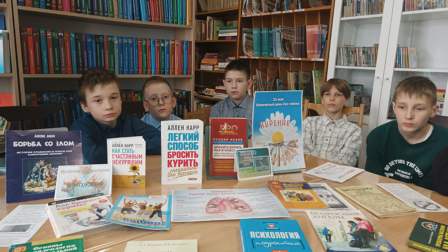 Также в библиотеках сети были оформлены тематические экспозиции: «Мир без вредных привычек», «За жизнь без табачного дыма», «Опасное наслаждение», «Тропинки, ведущие в пропасть», «Сигарета – это яд, он опасен для ребят!». На книжных выставках представлены книги и статьи о вреде курения, историях тех, кто бросил эту привычку, а также советы по здоровому образу жизни. Есть литература для подростков и молодежи, которая помогает понять важность заботы о своем здоровье и сделать правильный выбор.