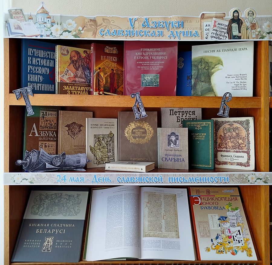 Также библиотеки сети оформили тематические выставки: «У азбуки славянская душа», «Живое слово мудрости». Выставки позволяют каждому посетителю окунуться в богатство славянского наследия, оценить роль просветителей в сохранении и развитии национальной культуры, а также почувствовать связь с нашими древними традициями.