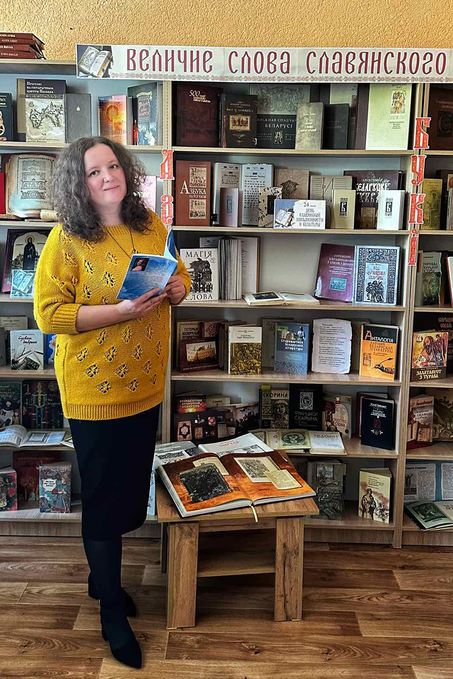 Ведущая мероприятия, сотрудник библиотеки Наталья Никончук, рассказала об истории праздника, о создателях славянской азбуки Кирилле и Мефодии, а также о первопечатнике земли белорусской Франциске Скорине, привела интересные факты из жизни просветителей. Она прочитала свои стихи «Буслы Скарыны» и «З дзённіка Францішака Скарыны». Также библиотекарь провела обзор книжной выставки «Величие слова славянского», на которой, представлена богатая и разнообразная литература, охватывающая исторические аспекты создания славянской азбуки, биографии святых Кирилла и Мефодия, а также вклад белорусских просветителей и учёных в развитие письменности и культуры. Здесь можно найти как классические издания и памятные книги, так и современные исследования, статьи и иллюстрированные издания, которые помогают лучше понять исторический контекст и значение этого важного праздника.