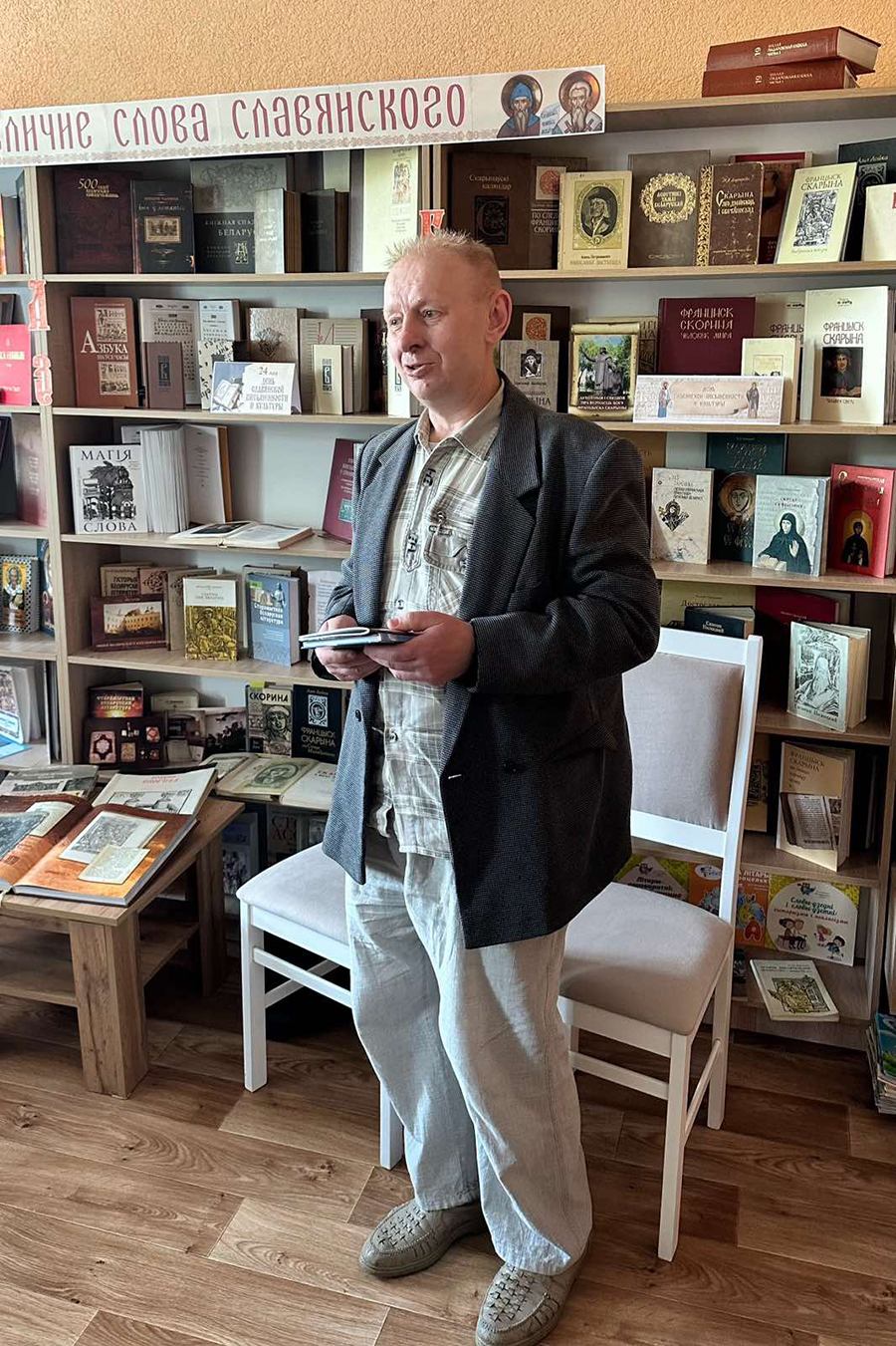 Своё видение о книгах в поэтической форме представил Александр Веденеев. Он прочитал стихи «Выбирайте книгу» и «Буквари духовные».