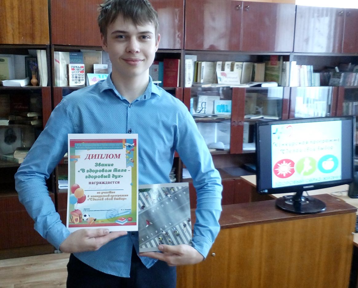 3 апреля читальный зал центральной библиотеки им. М. Горецкого собрал учащихся 9 класса средней школы № 2 на конкурсной программе «Сделай свой выбор». Несколько этапов конкурса позволили определить самого эрудированного в вопросах здорового образа жизни ученика. Им стал Яковлев Артём. Он получил диплом со званием «В здоровом теле – здоровый дух»