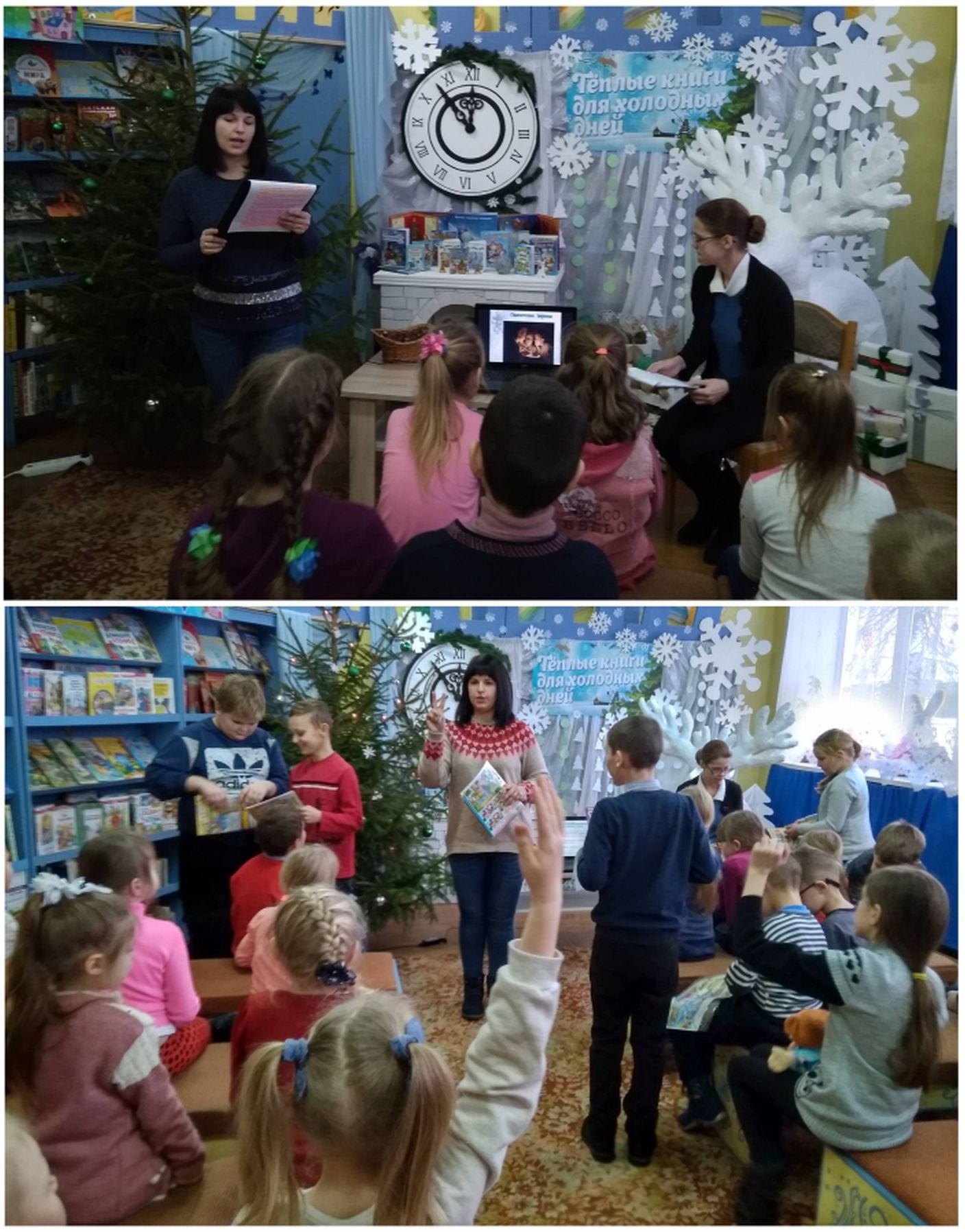 Мероприятия прошли весело и интересно, чему во многом способствовала атмосфера и обстановка, окружающая детей: изобилие интересных и добрых книг, ёлка, сверкающие огнями, камин с часами, а также, уже полюбившийся читателям, белый олень Алёша, исполняющий заветные желания.