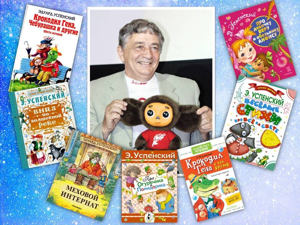 В декабре свое 80-летие отметил известный советский и российский писатель, сценарист, автор детских книг Эдуард Успенский. Персонажей, созданных этим автором, знают все, от мала до велика. Это Крокодил Гена, Чебурашка, кот Матроскин, пес Шарик, Дядя Федор, почтальон Печкин. Эдуард Успенский принимал непосредственное участие в создании таких детских передач, как «Спокойной ночи, малыши», «АБВГДейка», «Радионяня», «В нашу гавань заходили корабли», написал сценарии к ряду известных мультфильмов. «За выдающиеся творческие достижения в отечественной детской литературе» писателю была присуждена премия им. Корнея Чуковского.