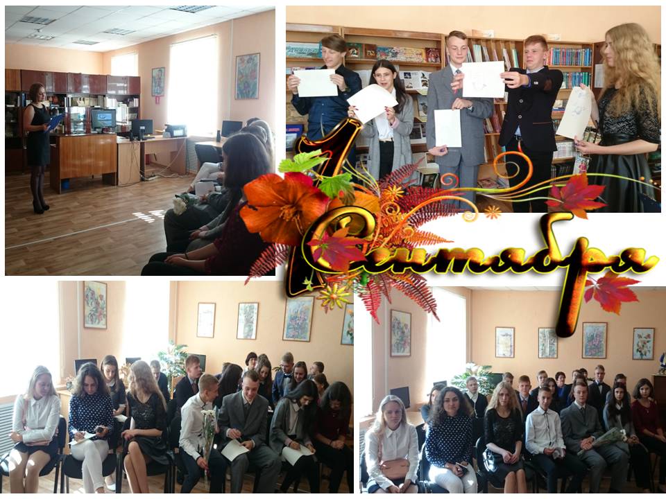 Центральная библиотека им. М. Горецкого и районная детская библиотека также встречали ребят в этот праздничный день. Урок знаний для учеников 10 классов СШ №2 «Беларусь – моя Родина» прошел в читальном зале центральной библиотеки. В начале мероприятия библиотекарь с помощью видеоролика напомнила ребятам о таком значимом событии, как 500-летие белорусского книгопечатания . Далее в течение мероприятия для учеников был сделан экскурс по нашей стране и ее областным городам. Ребята и библиотекарь поговорили о Беларуси: ее административно-территориальном устройстве, населении, религии, экологической ситуации, государственной символике.