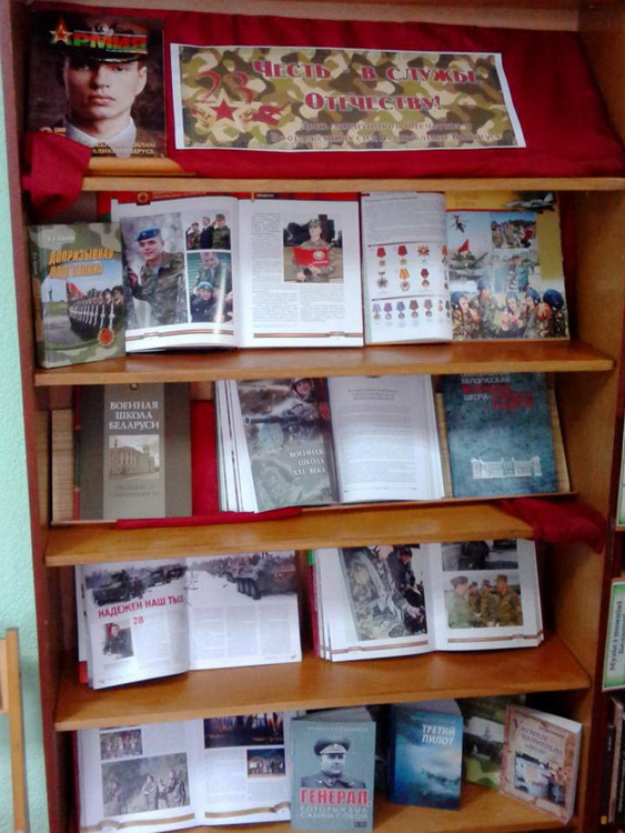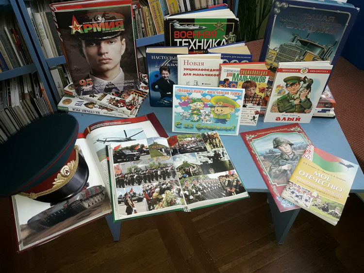 Дополнением к мероприятию стала библиотечная выставка «Верно служу – ни о чём не тужу». Яркая по своему оформлению, но очень значимая по смыслу, выставка охватила исторические моменты возникновения Советской Армии. Выставка будет интересна тем, кто хочет больше узнать об облике современной Белорусской армии и кого интересует оружие, военная техника и настоящие мужские профессии. На выставке представлены книги о великих полководцах и адмиралах, великих сражениях на море и на суше, а также книги об истории становления воинства и воинских ритуалах. Для выставки была подобрана литература, отражающая мужество, благородство, честь, отвагу сильной половины человечества. Как подготовиться к армии, какими правами и обязанностями обладает призывник - на эти и другие вопросы можно найти ответы в книгах для будущих призывников. Выставка действует до 28 февраля.