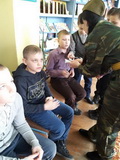В гости к ребятам зашел настоящий солдат — он предложил ребятам свою помощь в прохождении тяжелых испытаний, чтобы открыть тайны их способностей, остроту ума, ловкости, силу, - одним словом проявить себя. Конечно, не обошлось без весёлых конкурсов. С большим азартом детвора принимала участие в подвижных играх «Минное поле», «Кто кого», «Раз сапог, два сапог». Участники встречи активно отвечали на вопросы викторины «Солдатская правда». Интересно и увлекательно прошли конкурсы «Военные будни», «Умелый боец всегда молодец». Мальчики показали, как они умеют быстро справляться с армейскими обязанностями, а девочки, нисколько им не уступая, даже приняли участие в ручной схватке «Сила богатырская» попробовали себя в роли «призывниц». Все участники мероприятия блестяще справились с предложенными заданиями, но победила в итоге, конечно же, дружба!