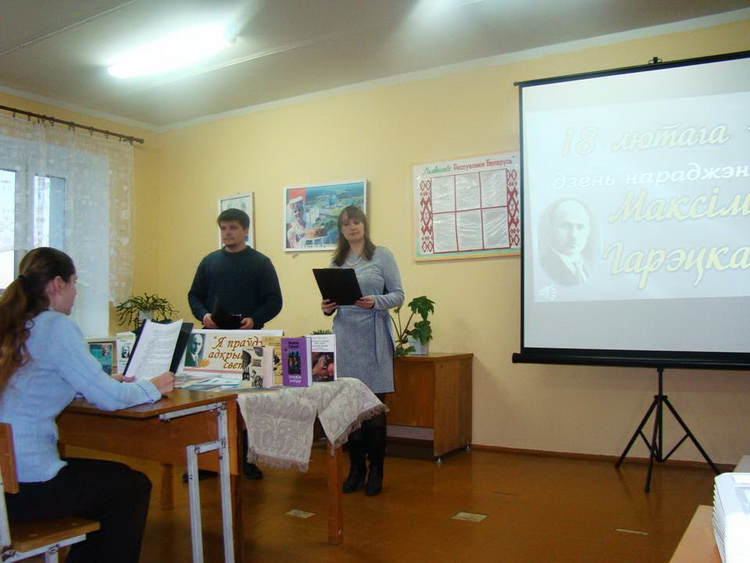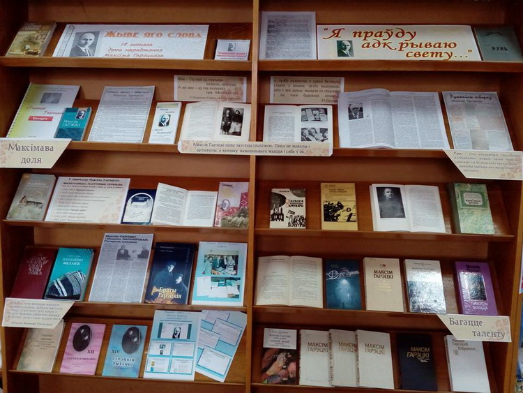 У чытальнай зале бібліятэкі на выстаўцы-праглядзе “Жыве яго слова” можна было пазнаёміцца з летапісам жыцця і творчасці пісьменніка, творчымі перыядамі, уласнымі творамі Гарэцкага, творамі і кнігамі пра яго. Экспанаваўся і адзін артыкул, які заўсёды звяртае на сябе ўвагу чытачоў. Гэта – “Максім Гарэцкі і Леаніла Чарняўская. Гісторыя кахання”.