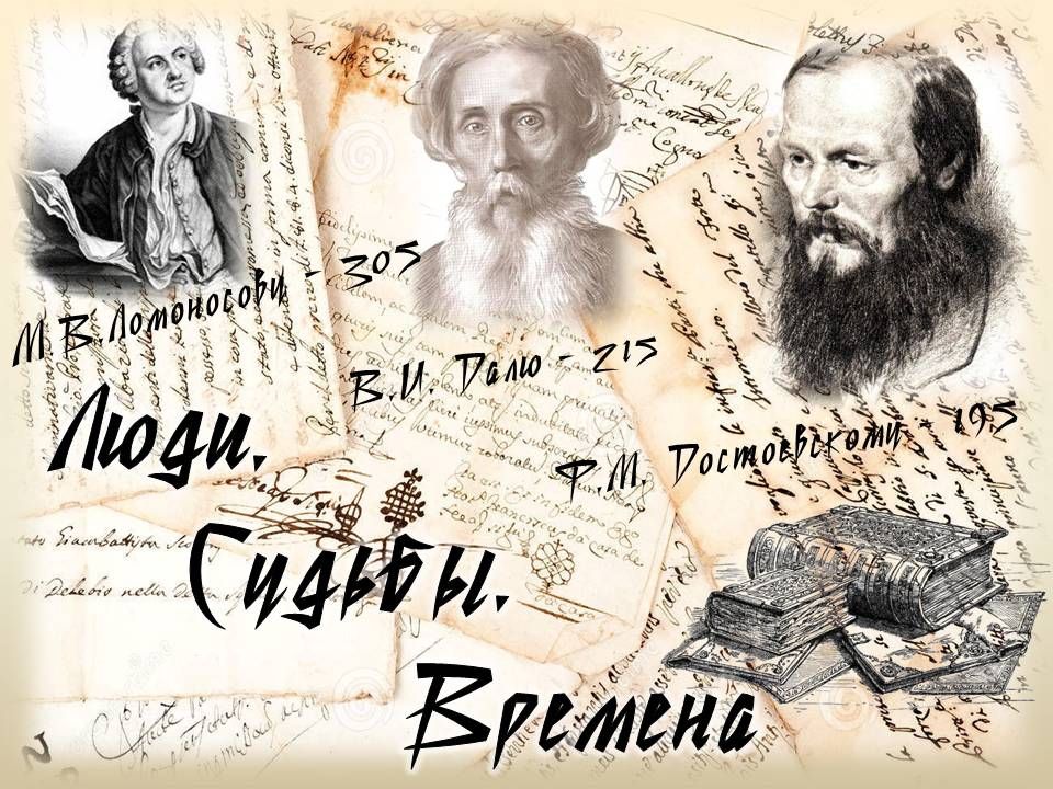 Для подготовки к заседанию «Люди. Судьбы. Времена», членам клуба было предложено изучить ряд изданий, раскрывающих ту или иную личность, в том числе и с точки зрения открывающихся новых исторических фактов. Во-первых, это книги из серии «100 великих…»: «100 великих гениев», «100 великих людей» «100 великих россиян», «100 великих загадок русской истории», «100 великих писателей». Во-вторых, это «Толковый словарь живaго великорусского языка». Словарь включает порядка двух сотен тысяч слов и тридцати тысяч поговорок, пословиц, присловий и загадок, которые служат для объяснения значения слов. И, конечно же, не обошлось без произведений великого русского писателя Федора Михайловича Достоевского.