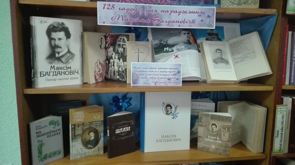 Да 125-годдзя з дня нараджэння – класіка беларускай літаратуры, аднаго са стваральнікаў беларускай літаратуры і літаратурнай мовы новага часу, паэта, празаіка, публіцыста, літаратуразнаўца, перакладчыка Максіма Багдановіча на абанеменце Раённай бібліятэкі імя Максіма Гарэцкага распачала дзейнічаць выстаўка літаратуры “Светлы след будзе вечна жывым…”