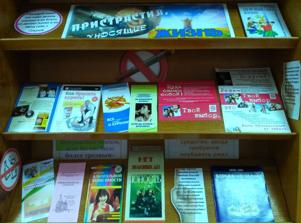 На выставке экспонирована научно-популярная литература, справочники, учебно-методические пособия, электронные издания, буклеты, памятки и листовки. Представленные издания могут быть использованы учителями, социальными педагогами, психиатрами, воспитателями, а также полезны широкому кругу читателей, желающих уберечь себя и окружающих от неминуемой гибели.