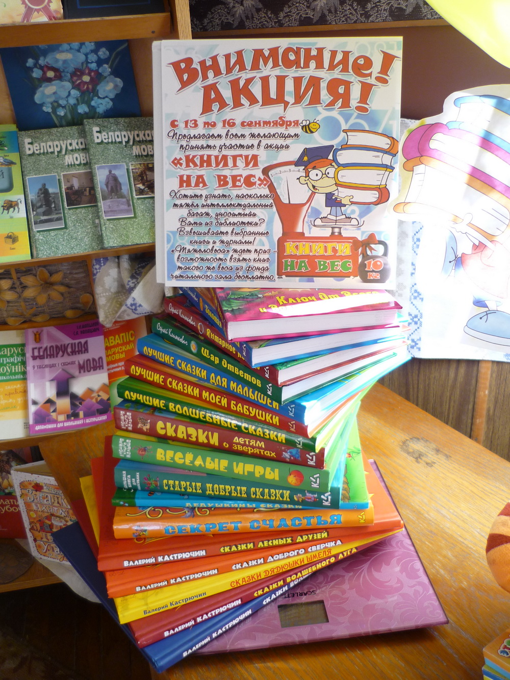Всем знакомо выражение «Грызть гранит науки». Оно, конечно же, о том, что постижение наук даётся не так-то просто. Но можно взглянуть на него и под другим углом, ведь книги, в которых собрано столько всего интересного, по-прежнему тяжеловесны. А вот работники районной детской библиотеки задумались: насколько тяжел интеллектуальный багаж, уносимый их юными читателями из библиотеки. И решили устроить необычную акцию «Книги на вес» которая проходит в библиотеке с 13 по 16 сентября в рамках Недели пропаганды библиотек. Приглашаем всех читателей принять участие!