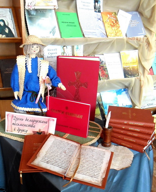 Так же в преддверии Дня белорусской письменности в читальном зале Центральной библиотеки имени М. Горецкого была оформлена выставка «У родным слове сэрца пачуццё», ознакомиться с который может каждый желающий посетитель библиотеки. В разделе «З вытокаў славянскага пісьменства…» представлены книги по истории белорусского книгопечатания, книги о Скорине, а также факсимильные издания старинных книг, которые позволят читателям совершить экскурс в историю и своими глазами увидеть, какими книги были раньше.